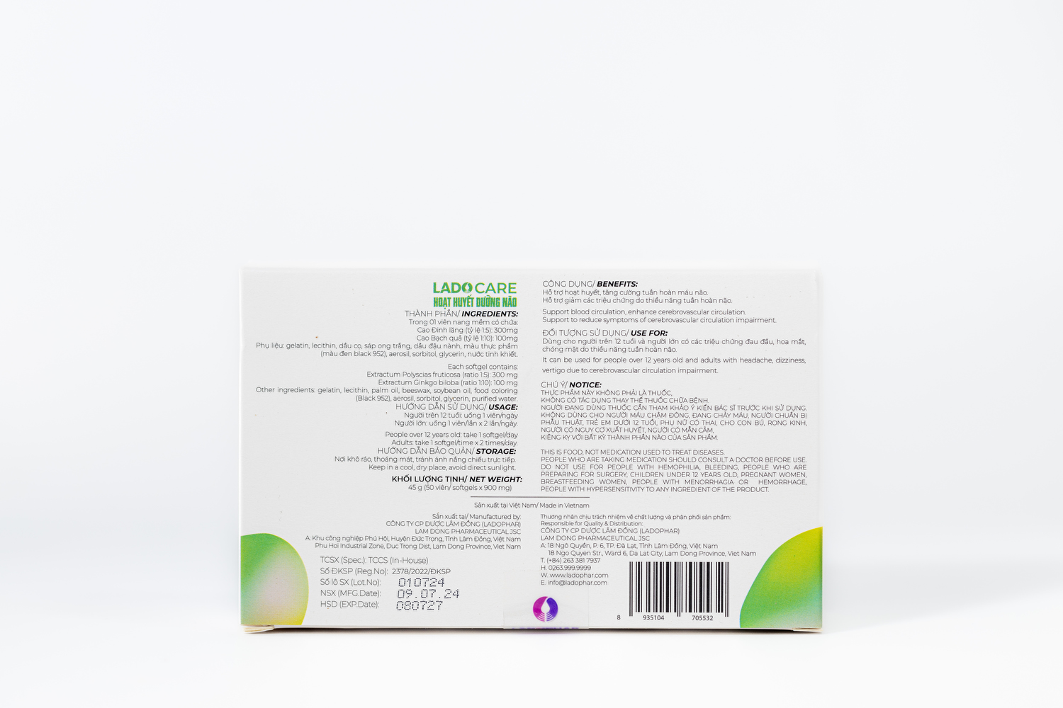 Hoạt huyết dưỡng não Lado hộp 5 vỉ x 20 viên