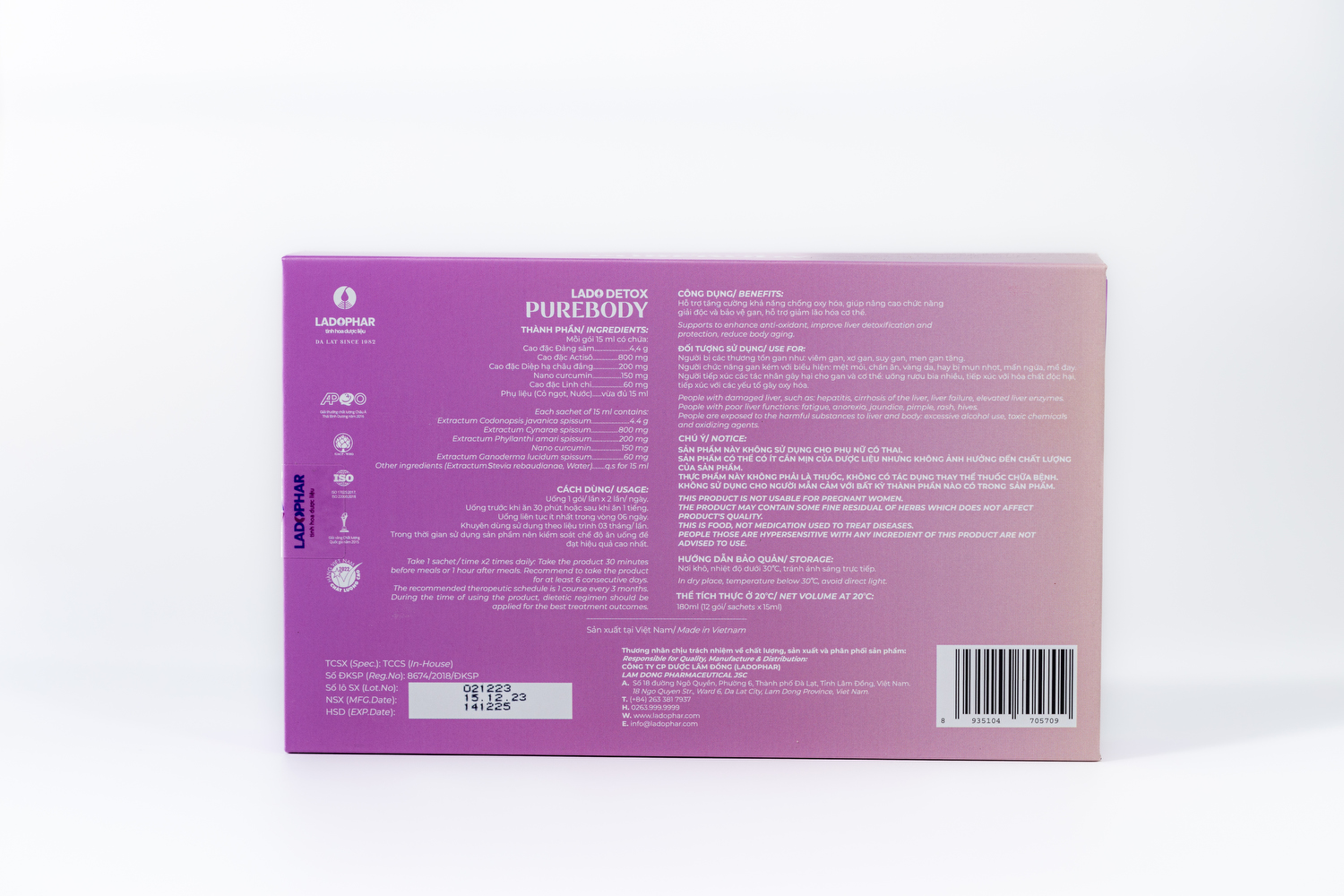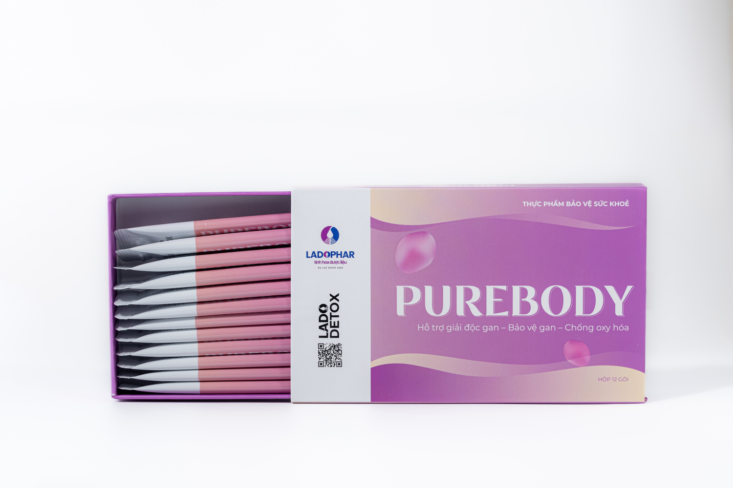 Purebody Lado Detox hộp 12 gói giúp sáng da bảo vệ cơ thể